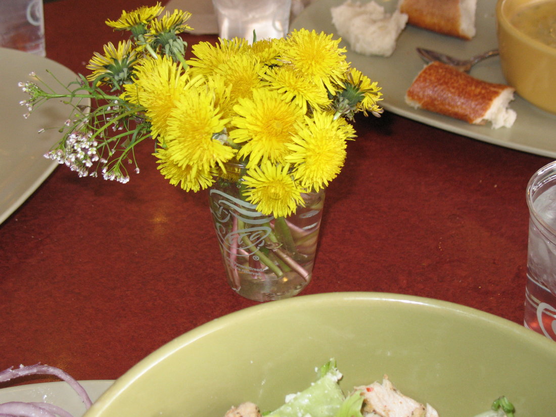 Ha! Ha! Hey, your lovely neighbor has the whole set of Hunger Games! We also have our first bouquet of weeds, I mean, dandelions, on our table. Here’s to a better week!