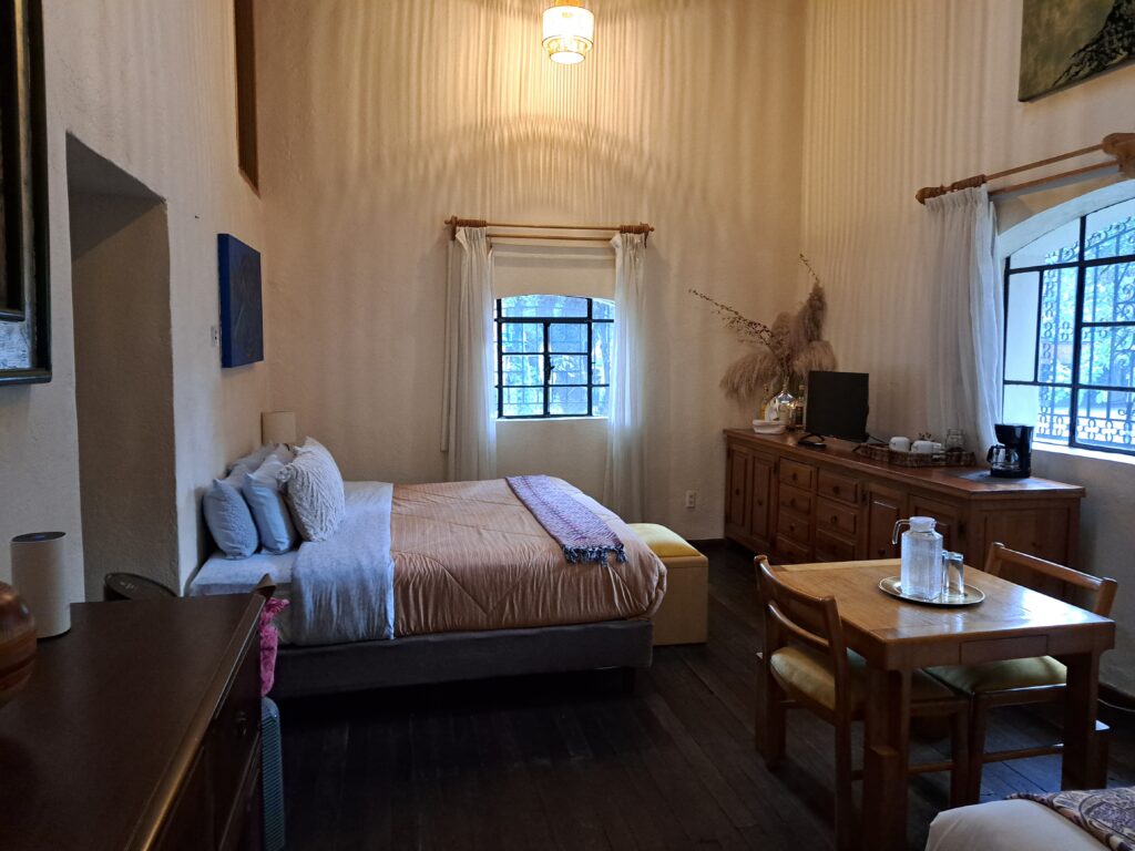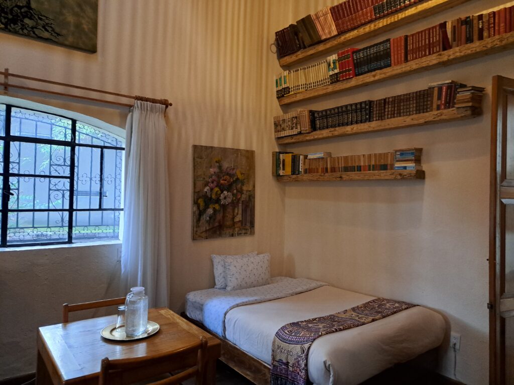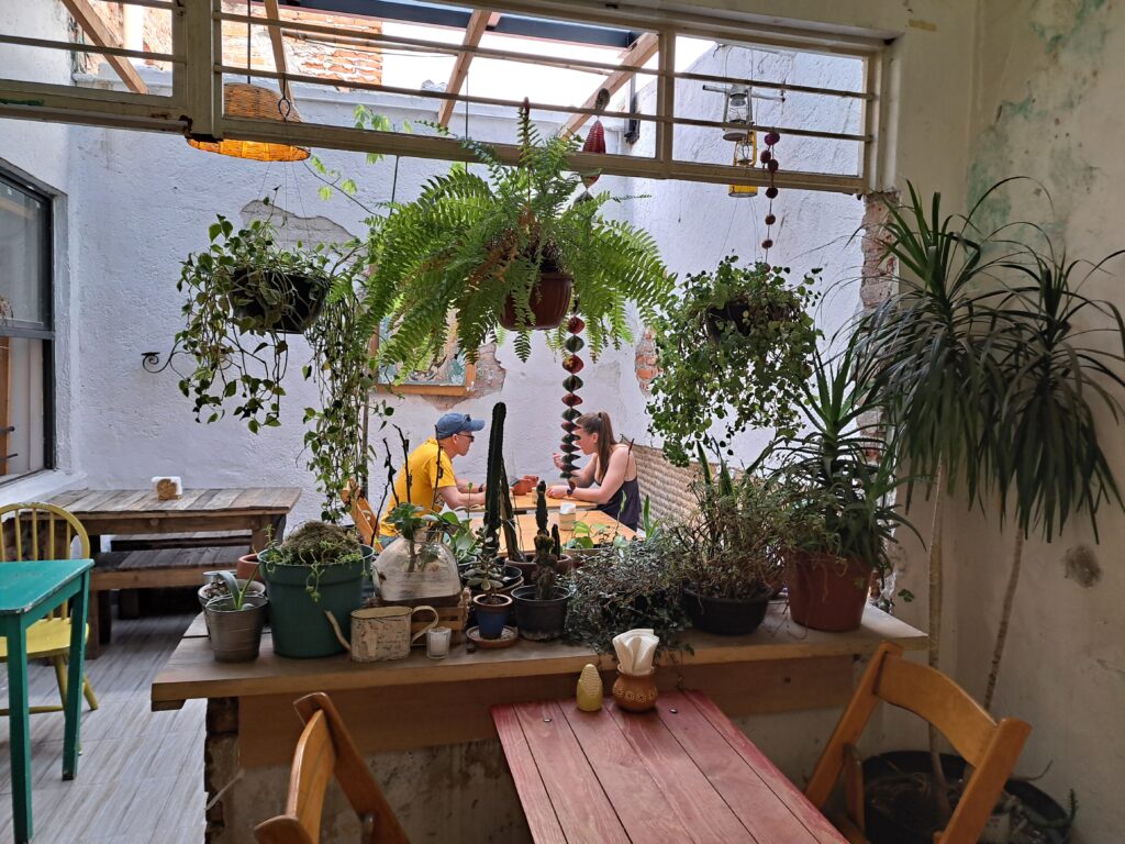 We took a quick flight from Oaxaca City to Mexico City, then headed to Coyoacán, aka Frida Kahlo’s old neighborhood, to the lovely Meztli Casa Hotel and Spa. Once again, I loved the outdoors-in space of this hotel’s lovely little courtyard.