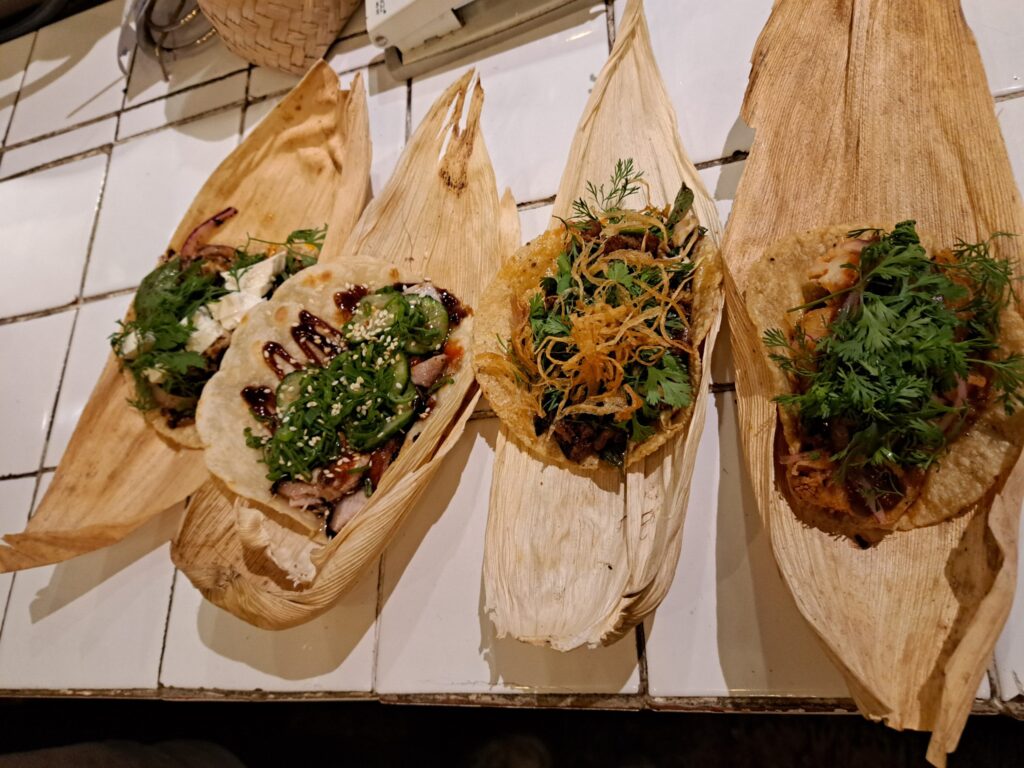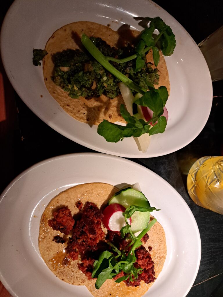 We stopped briefly for a snack at Craving Knafeh, because J had always wanted to try knafeh, a Middle Eastern pastry made with angel hair pasta and cheese. Then we continued on our true mission of seeking out more tacos. We headed to Michelin-recommended Tacos Hola El Güero, and they were very delicious, even if the restaurant itself probably isn’t what you visualize when you think of a restaurant recommended by Michelin.