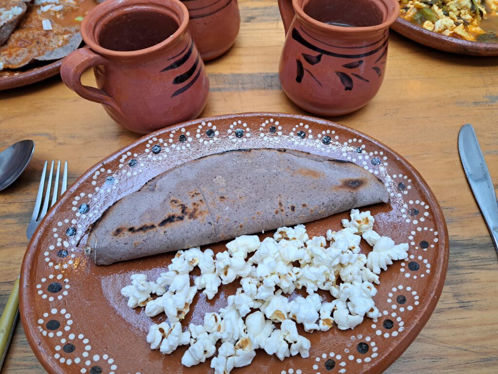 These were all unbelievably delicious. It is really a struggle when you want to eat more, because you’re like, “When is the next time I’ll get to eat a taco like this?” and you don’t know. We ran into other American tourists who live a little closer and just come to Mexico City for the weekend to eat food and go back home. Totally get that. However, at this point, I’d started to struggle. My stomach couldn’t take it. The next morning when we went to breakfast, I got plain cheese on a tortilla. And check out the side dish. I felt like I had been demoted to Kids Meal status while Cute W and J just kept going. But I loved how cute the place was.