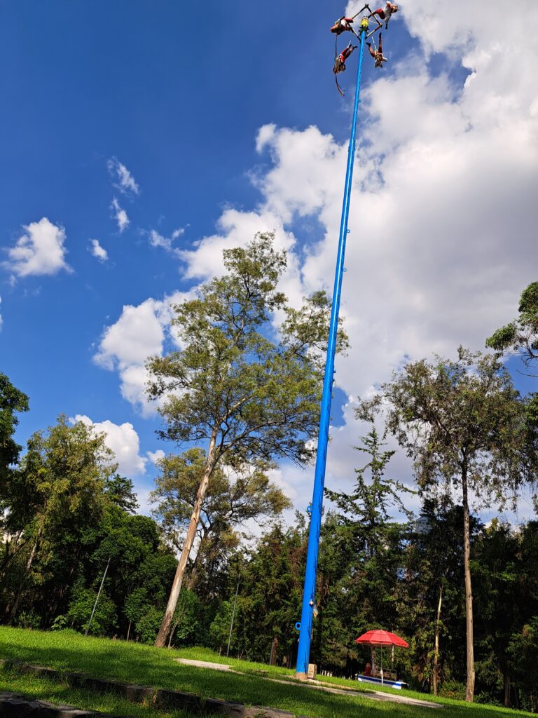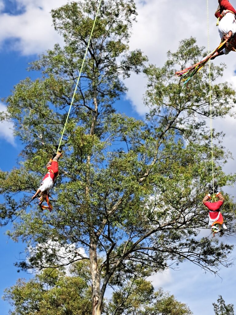 Then we stumbled across street performers doing Danza de los Voladores, an ancient ceremony where they climb a super-high pole and then spin their way down.