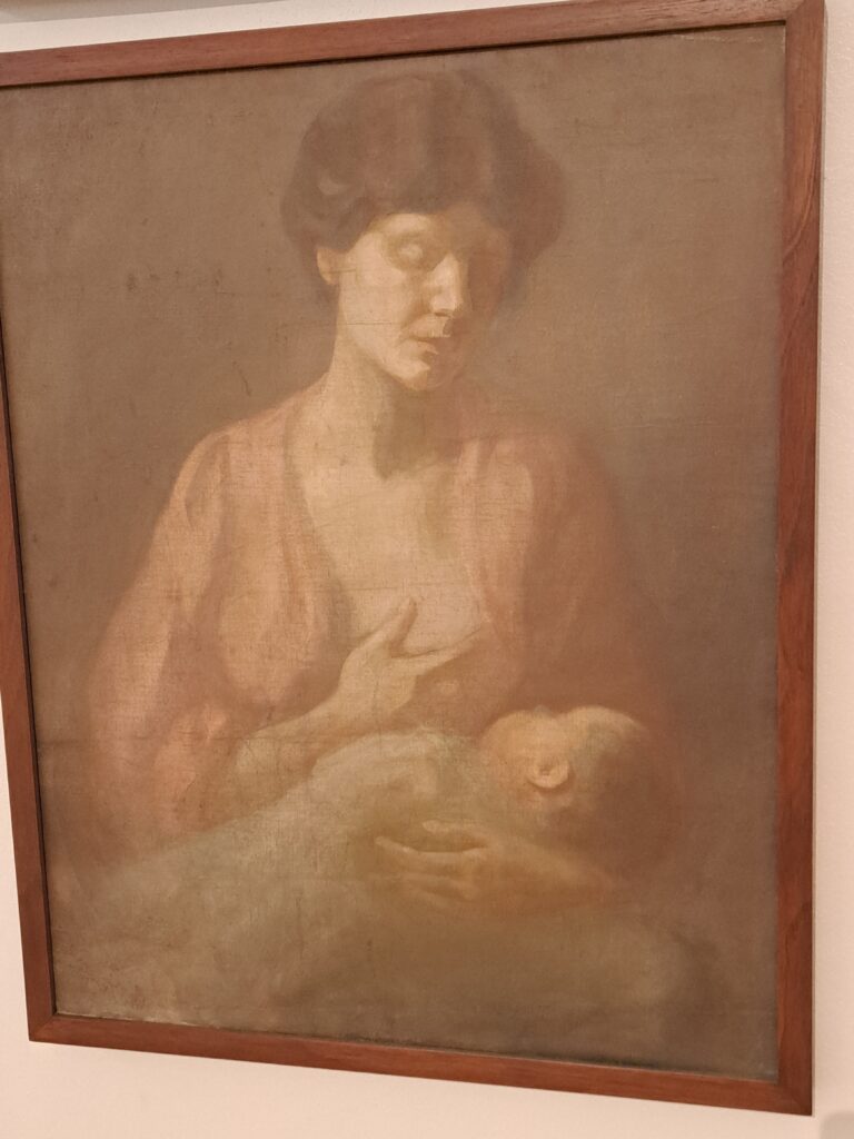 And then in another spot there’s a portrait by Pierre-Auguste Renoir’s son Jean (girlish looking to our modern eyes) and other images of childhood, like Salvador Dali’s sculpture of Alice in Wonderland, which you can see on the right, kind of around the corner.