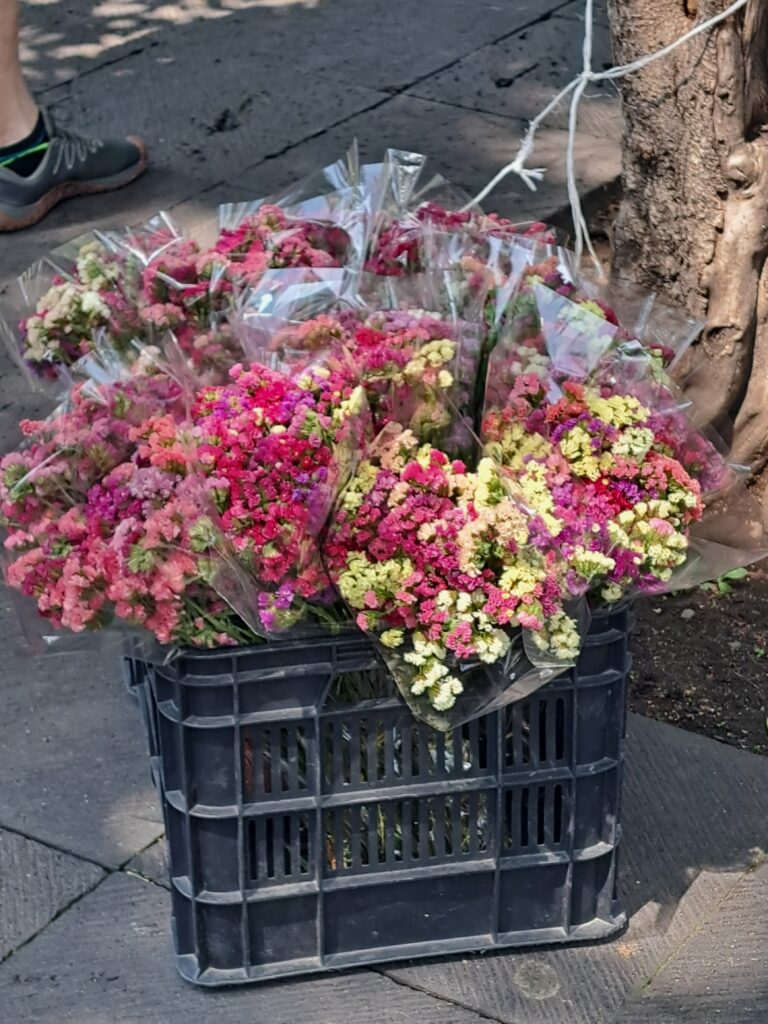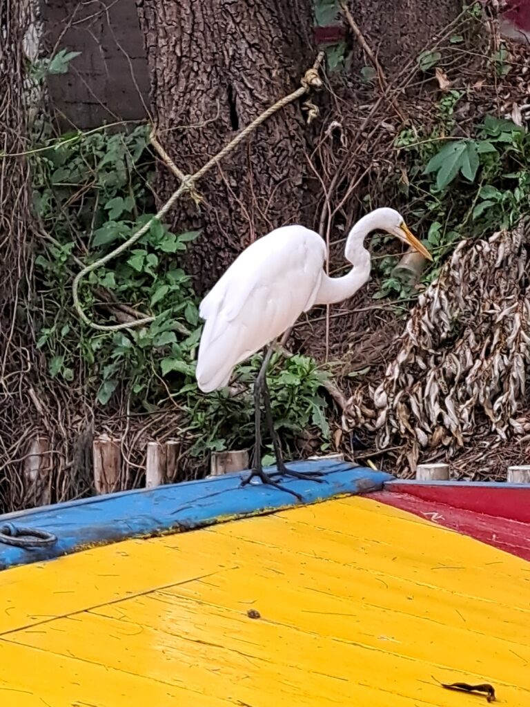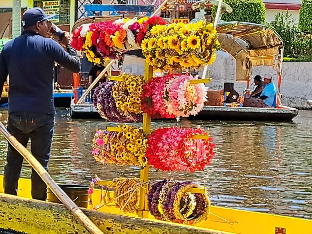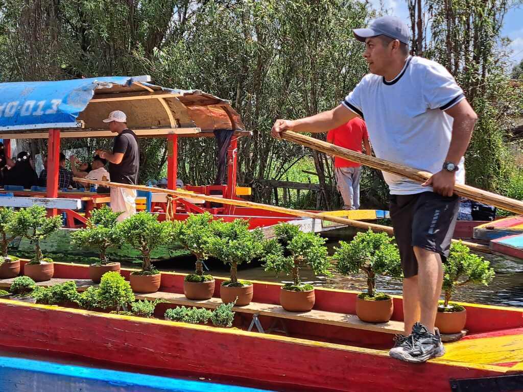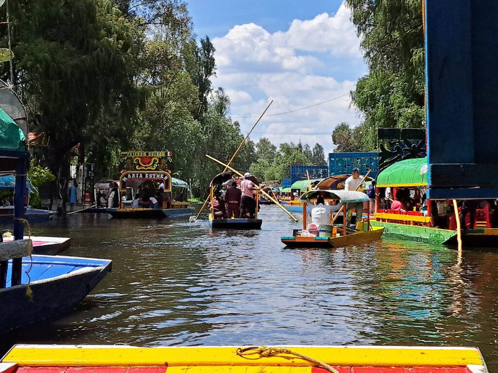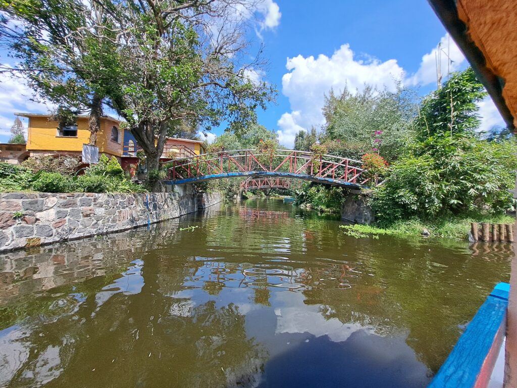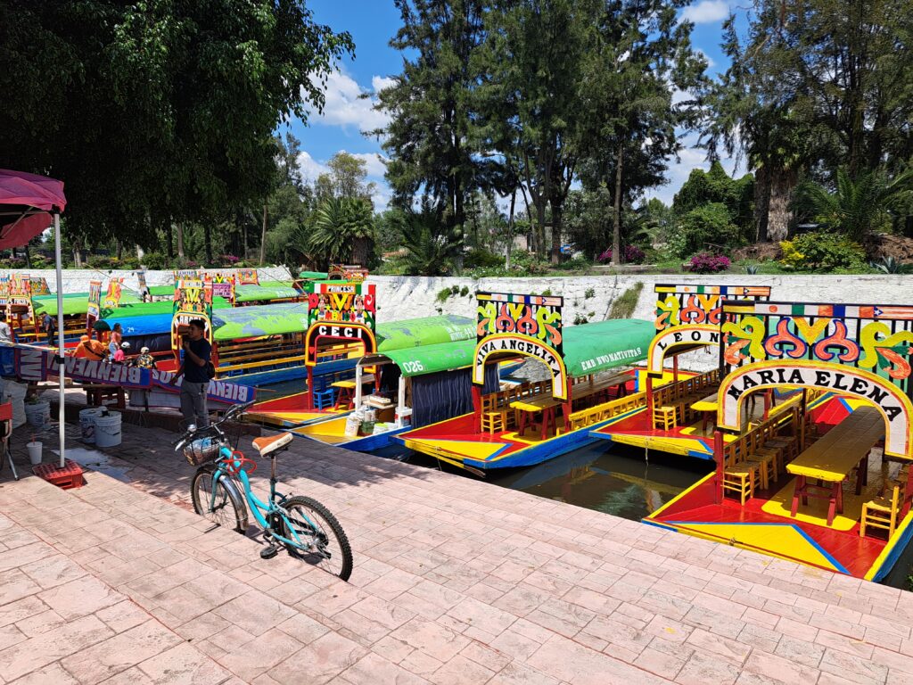 Sunday was our last full day. We headed back to our local market for breakfast, then took a DiDi (a car that’s popular in Mexico) to the Xochimilco Canals. This turned out to be a really fun drive because our driver was chatty, and he and J spent the entire time in animated conversation in the front while Cute W and I tried to follow the conversation but mostly just enjoyed feeling impressed by our trilingual daughter. We were heading to the canals to take a Sunday afternoon ride on a trajinera boat.