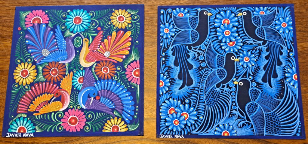 But we couldn’t resist buying some art. It’s gorgeous. And affordable. Seriously, if you have a big space to decorate and you like color, it’s well worth your while to travel to Mexico City and just buy a lot of stuff. We don’t have much space to decorate, but we couldn’t resist buying a few pieces, although these were what we bought over the course of the whole trip. The orchids and the tiny nature pieces are what we bought at this market.